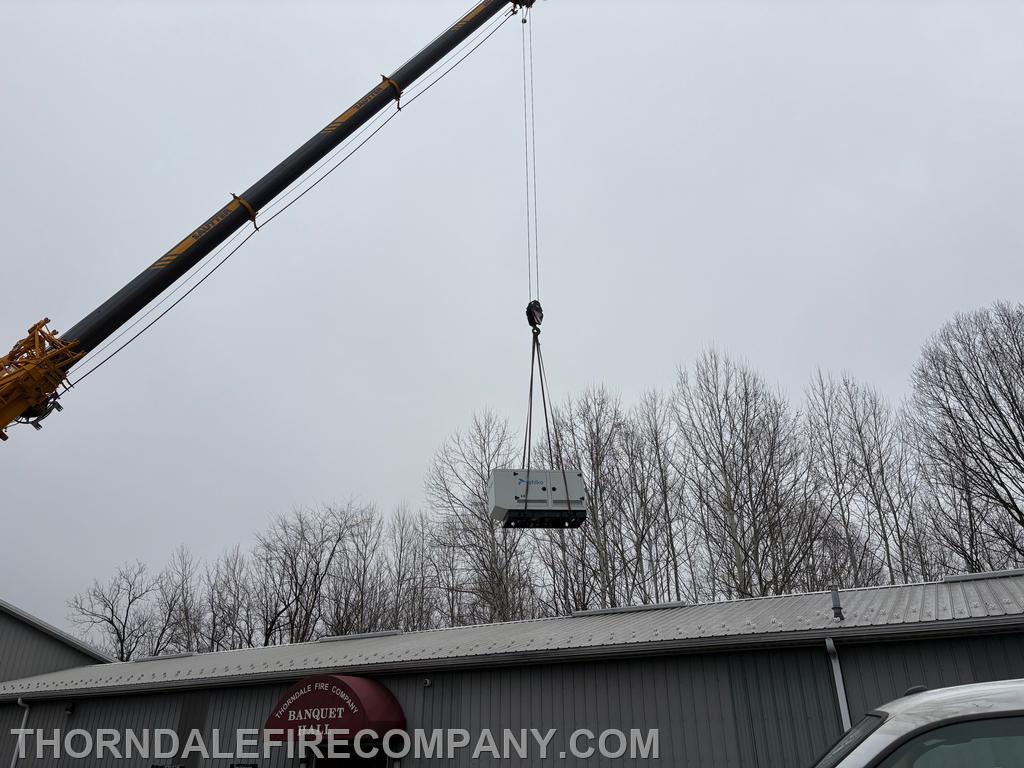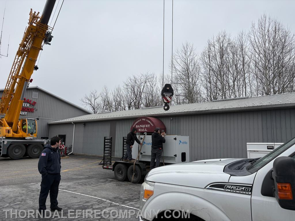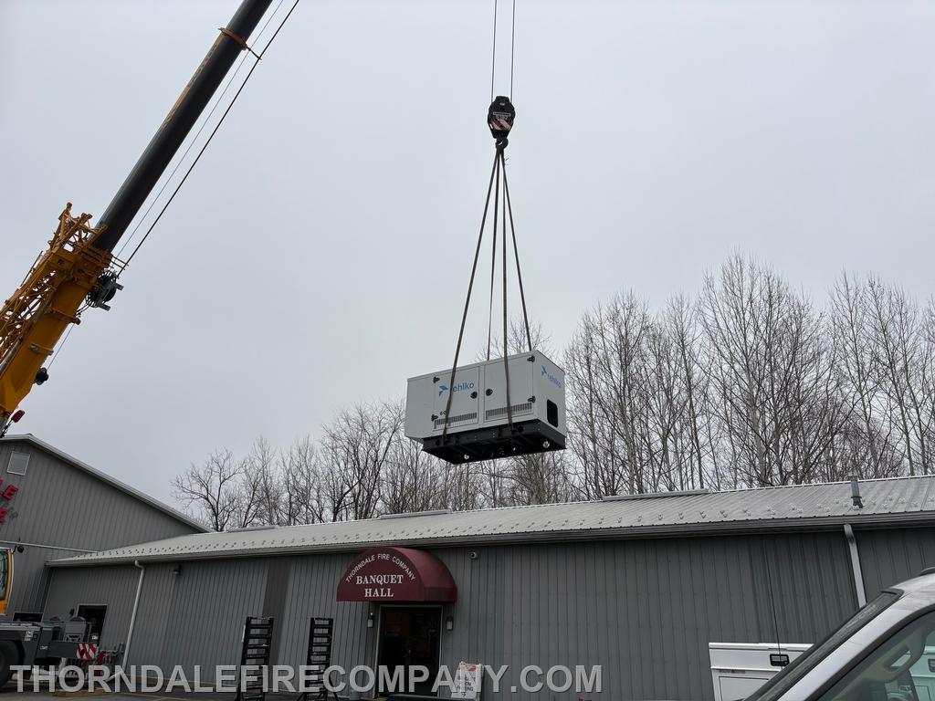 On Friday morning March 6, 2026 Premium Power delivered a new backup generator that will used to support our operations during power outages. The generator was purchased as part of an LSA grant received whereby the fire station is better positioned to assist our residents and community members during times of severe weather conditions or other types of emergencies occurring in the township where power outages are being experienced for extended periods of time. A crane was brought in and utilized to lift the generator over the building and set it in place on the pad located to the rear of the building. Premium Power is now in the process of completing all the required connections to make the generator operational.